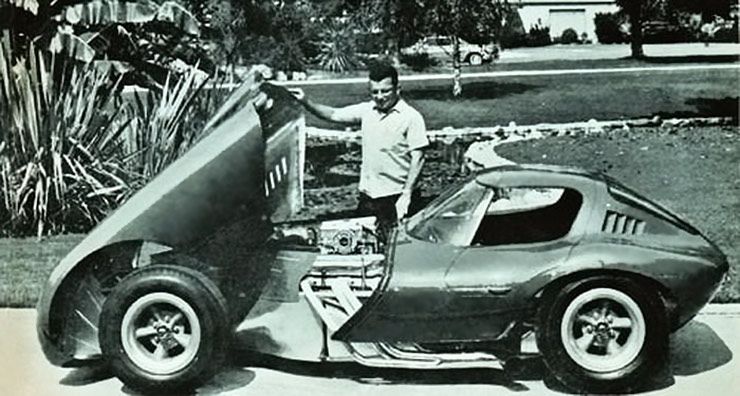 Setting up shop in Anaheim, California, with master fabricator Don Edmunds, he’d build 100 fiberglass-bodied Chevrolet-powered coupes to satisfy FIA homologation requirements.