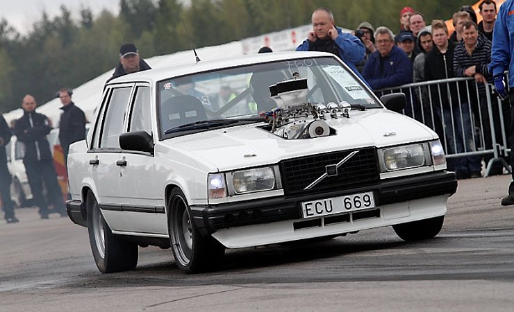 This particular giant box was built by Gunnar Larsson. Gunner’s ride started out as a mundane 1987 Volvo 740 Sedan, however after mulling it over a bit he decided to add some much needed power by way of a small block Chevy clad with a 6/71-blower. It’s not politically correct and is about as environmentally friendly as an atom bomb, but once you see this sucker go I think you’ll agree that Mr. Larsson has created one bad ass box.