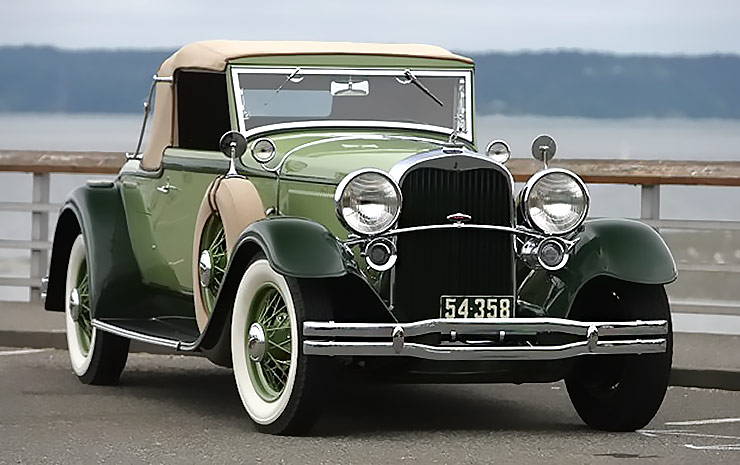 The Lincoln K-Series, also known as the Model K, came in after the L-Series with a new chassis and an improved engine—384.8 cubic inches with 120 horsepower.  The car sat on a 145 inch wheel base and featured a longer hood, rounder bumpers, and elegant designer headlights.  As a final touch, Lincoln placed a greyhound—designed by Gorham silversmiths—on the radiator cap.  Some say that the car’s sleek new look and high-performing powertrain were due to Edsel Ford’s fastidious oversight—Edsel was given enormous freedom on the Lincoln design side and, in turn, paid special attention to Henry Ford’s rescued marque.