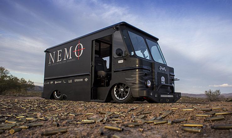 It was first conceived when Clint Walker noticed how frequent and troublesome trips to the firing range had become. Clint is the president of NEMO Arms, a leading manufacturer of precision long range AR-type rifles, including the world’s first .300 Win Mag AR and US Military Tier ONE operations. He quickly came to the realization that making 45-minute trips to the range to test new products would be easier with a proper vehicle to haul them in and all of the tools and supplies he would need.At first, Clint decided it was time to step things up by purchasing a mail-type truck that could be modified to hold his company’s product. Since he wasn’t too familiar with these types of vehicles, he gave his old friend Jeff Davy of Devious Customs a ring to look at options for his new project. From there, Jeff searched around and found this 1966 Grumman Kurbmaster that was very local to his Riverside, California-based shop. After a short trip to go check it out, he ended up taking it for a reasonable offer and hauling it away in order to get the ball rolling.