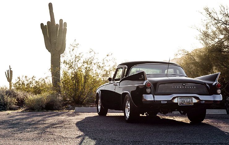 January 2011, we won tickets from KSLX Classic Rock radio station to the first MotoExotica auction to be held in Phoenix on January 15th. The auction site was way on the other side of town, about a 40 mile drive. Before driving out just to watch, we went online and checked the inventory. There it was! A Black 1960 Studebaker Hawk. The pictures looked good so we had to go to see one in the flesh. It looked fantastic! All black, laser straight. The owner came out and started it up. Wow! 350 Chevy small block with a 4 barrel carb and a big cam. The idle was awesome.