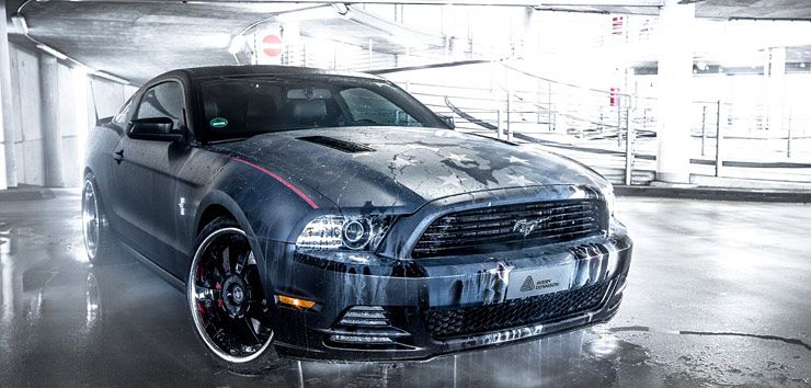 The basis for the extravagant Tuning Project is a 2013 Ford Mustang GT with a five-liter V8 under the hood. The front axle has the dimension of 9.5 x 20 ET 35, and the rear axle is equipped with 10.5 x 20 ET 35.