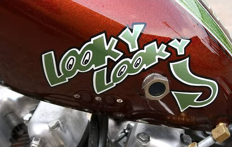 The Looky Looky chopper has a classic look, that has a large influence from hot rodder Ed Roth as well as having a large influence from the early 60′s style Bobbers and Hot Rods.