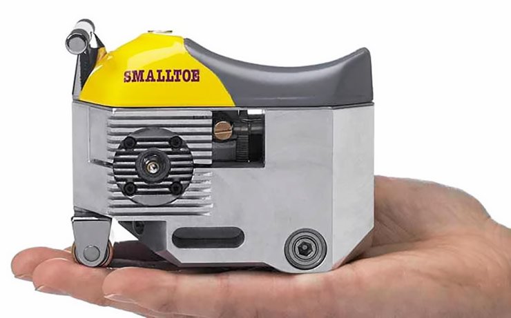 Tom has constructed the world’s smallest motorcycle, called ‘Small Toe’, weighing in at just 2.4 pounds and measuring 2.5 inches (65mm) high and 4.5 inches (115mm) long. It has a top speed of 1.2 mph (2 km/h) delivered from a tiny, ethanol-powered combustion engine similar to those found in radio controlled model aircraft.