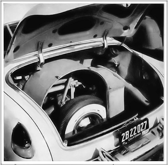 FIFTH WHEEL MECHANISM fits into Walker’s Cadillac’s trunk with no room to spare. Gas, tank normally under trunk is put in front of rear axle