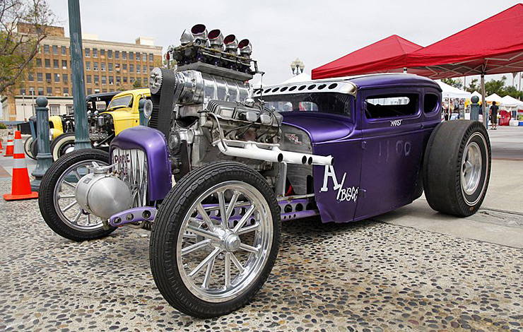 What Markey did to the mill next was put a Hampton blower on top of it with eight Stromberg Carburetors on top it! (Yes eight of those things)! The Pontiac mill and the front end was placed higher up for weight transfer during launch on the strip (just like most of the cars in the 60s). After the engine and transmission where installed the car was then giving its famous Purple and White paintjob and it was ready to be shown to the hot rod world!