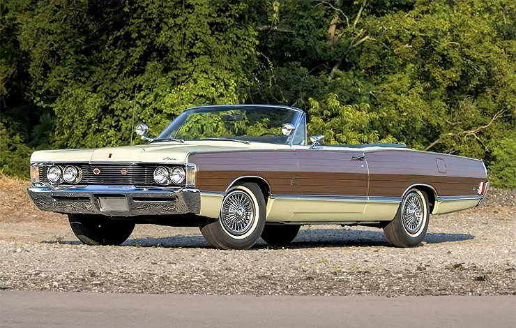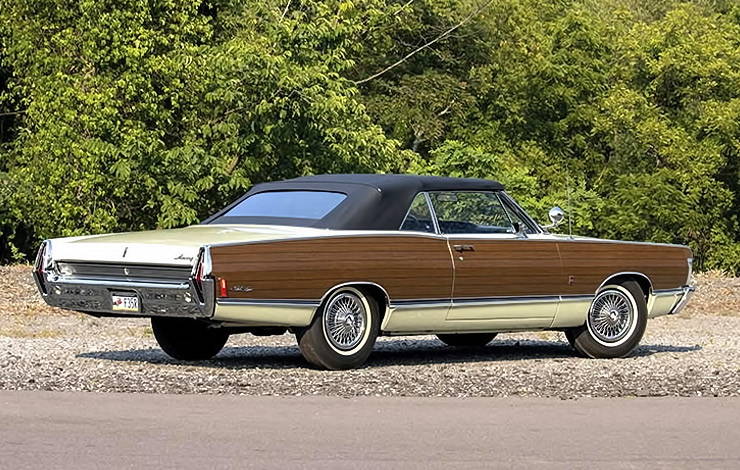 Mercury decided to expand the option to non-wagons in 1968, making the appliques available on its top-line, Park Lane convertible and 2-door hardtop models, as well as the Mercury Brougham two door sedan. The new look made its début at the Detroit Auto Show in January of that year.