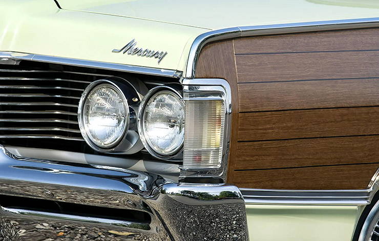 Period ads lauded the “simulated walnut tone paneling” not only for its looks, but also for its practicality, as a stopper of door dings. Still, the woodie look was more about fashion than function, seeking to add a dash of cosmetic class to the slab sided body of the big Mercs.