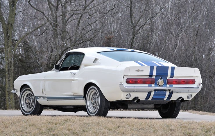The SuperSnake was an engineering study that was the result of a suggestion by Carroll Shelby to Shelby America’s Chief Engineer, Fred Goodell. Shelby asked Goodell to put together a 1967 GT500 powered by a super high performance 427 engine which could be used a test vehicle by Goodyear. The car Goodell chose was a white fastback (serial # 67402F4A00544). It was given a lightweight 427 medium-rise GT40 MK II engine fitted with aluminum heads, aluminum water pump, mechanical lifters, a single 780CM Holley 4V carburetor and a unique “bundle of snakes” GT40-style exhaust header system. It also had a large oil cooler and remote filter, a 4-speed transmission and a 4.11 rear end with a Detroit Locker “No-Spin” center section. The car was topped off with special Guardsman Blue stripes running up and over the top in a narrow-wide-narrow row pattern.