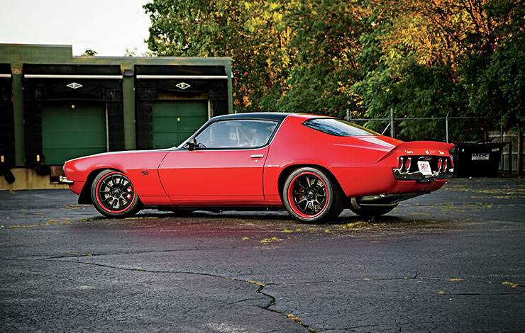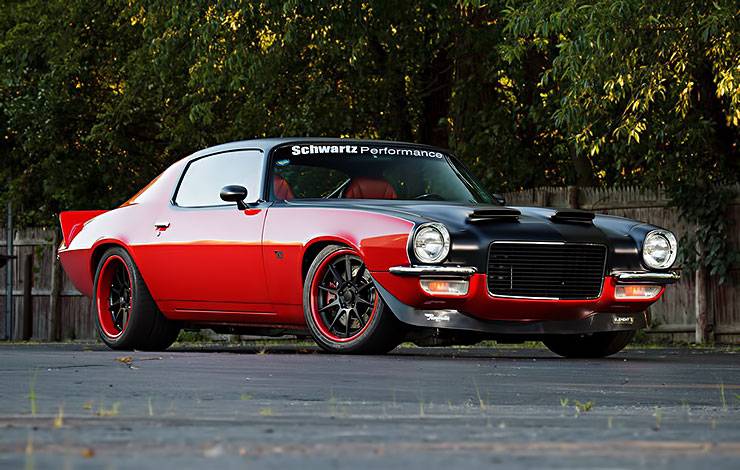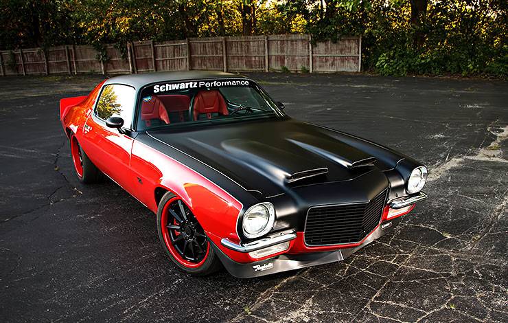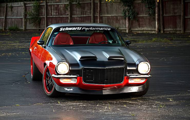 Behind the LS3 is a Tremec T56 Magnum 6-speed manual transmission using an American Powertrain “Science Friction” clutch/flywheel & Hydramax hydraulics kit. The combo is good for 11.8-second e.t.’s at 127 mph on street tires. Throw some slicks on it, and this is a solid 10-second machine. The Raybestos ’71 Camaro RS was painted by The Paint Spot in Addison. They resurrected the look of the ’75- 80 Camaro RS paint scheme; the hood and roof were painted satin black. The Forgeline RB3C wheels are powdercoated satin black with a gloss red lip to match the paint; this beast is a true beauty. All we can say is, WOW! The gang at Schwartz Performance did a great job bringing this year’s build to life. The Raybestos RS Camaro is the perfect combination of beauty and brawn. Take a look at the photos and judge for yourself.Schwartz Performance has really outdone themselves, the Raybestos Camaro RS is quite a car! She’s the perfect combination of performance and style. All we can say is, well done Jeff Schwartz, well done.