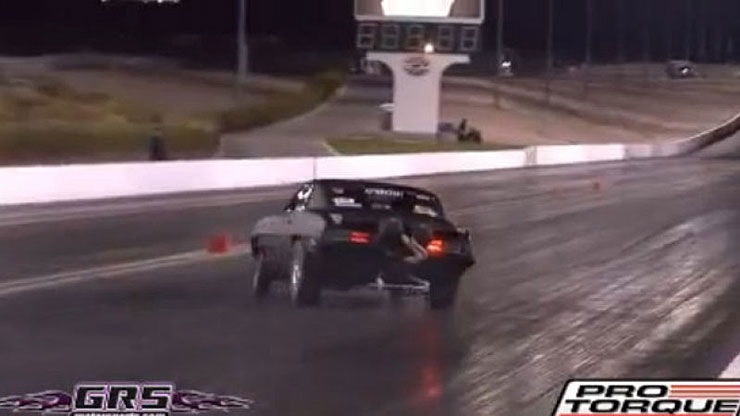 When the “Christmas tree” start lamps go green, the driver Eric Peterson slam the throttle, but his XDR Pontiac Firebird lost its grip just after the start. You can see what happens after that in the video after the jump. All that happened in less than a couple of seconds.