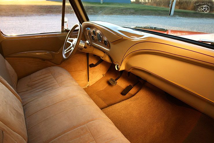 Starting life as a 1976 F-100, this truck, dubbed “Senorita” by the builder, is immediately striking with its simple yet effective bright red paint job. The Air Ride system allows the truck to sit incredibly low at rest, accentuating the long slab sides of the truck. The large billet aluminum five-spoke wheels are a great help, too.