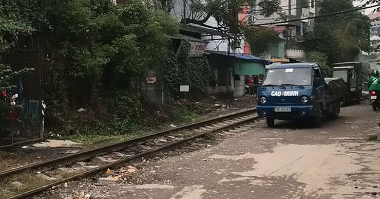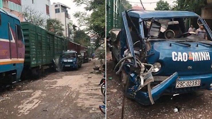 A truck parked next to a train track in Vietnam ends the way you think: BADLY.