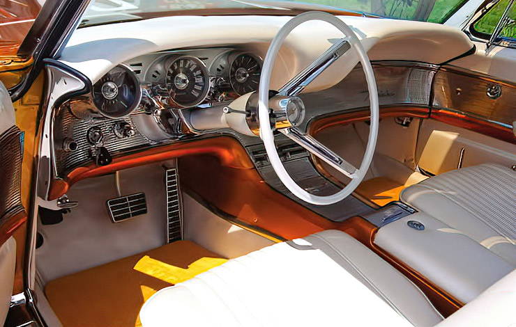 Model year 1961 saw a new, projectile look for Thunderbird, along with a larger 390 cubic inch FE series V8 engine. Also worthy of mention is the introduction of several “firsts” for the automotive market. Most notably, the highly-touted “Swing Away” steering wheel was new and standard equipment. With the transmission in Park, the steering wheel could slide approximately 18 inches to the right, allowing the driver to exit the vehicle easily.