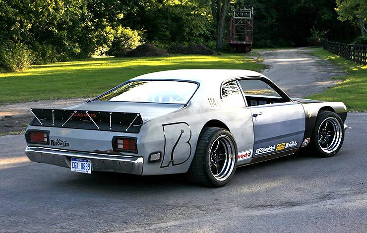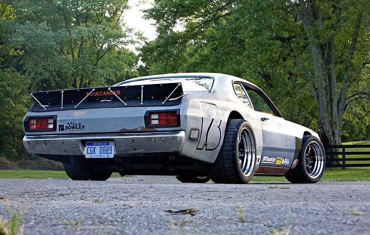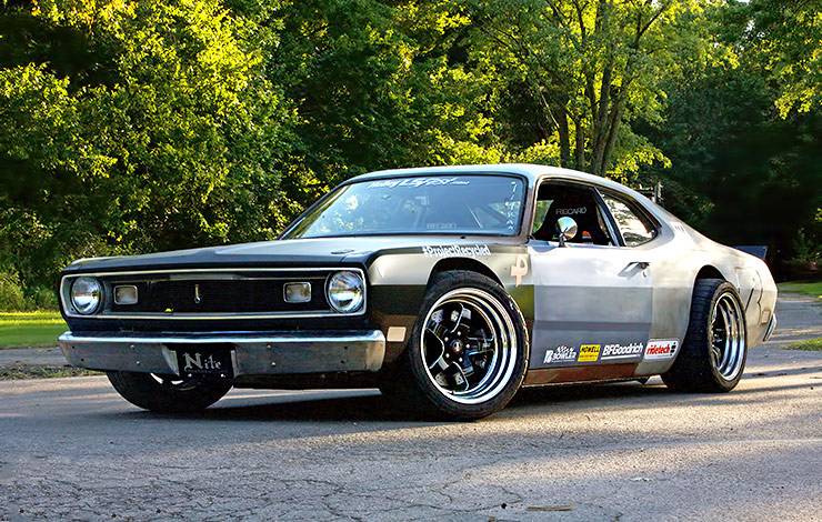 This car has had many different engines and transmissions in it over the years, but as it sits now, the Plymouth Duster is riding on a Chevy Corvette C6 chassis, and is powered by a 6.0L LS2.