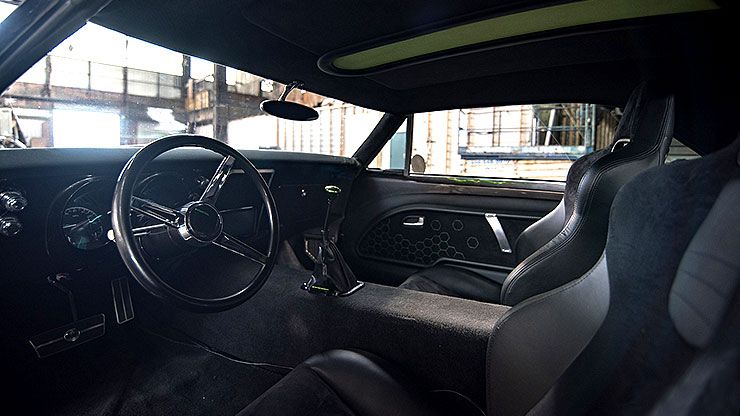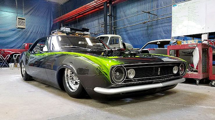 Apart from the insane engine and stance, the most noticed aspect of the build is the suicide doors – again, not a feature you frequently see on first-gen Camaros. Surprisingly, the Camaro has kept its original floor, although the entire body was cut off and dropped three inches lower. The tunnel has been raised and the rear seat and parcel tray deleted to showcase the cantilever rear suspension system. Interior decorating was handled by Lucky 7 Rod Shop, using suede from the floor to the ceiling and vinyl of the perforated and non-perforated variety to trim the dash and edges of the seats.This is probably one of the most wild builds and it’s not your average take on a Camaro, that’s for sure.