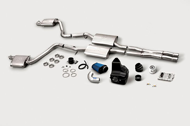 “Scat Pack 2 kit” boosts power as much as 56 horsepower and 30 lb-ft of torque while the “Scat Pack 3 kit boasts up to 75 horsepower and 44 lb-ft of torque over the stock engine.