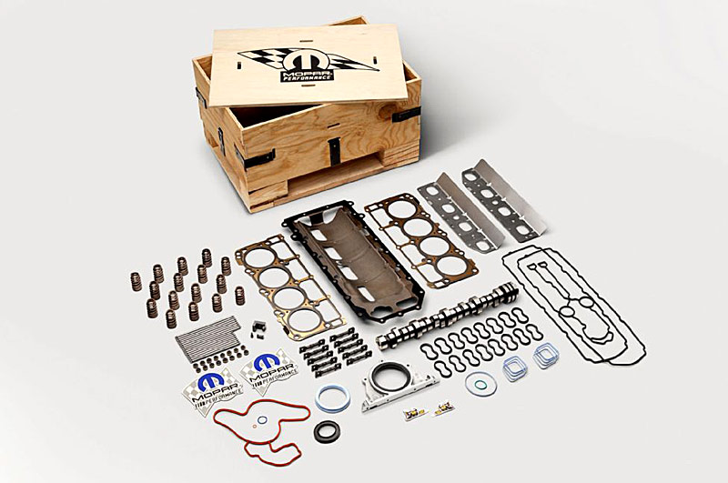 “Scat Pack Performance Stage 2 Kit” provides a special hotter camshaft and performance valve springs to further improve airflow, tie bars to reinforce the rocker towers, upgraded pushrods and all the gaskets.