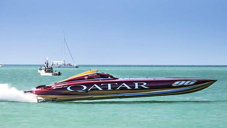 The Spirit of Qatar is the world’s fastest catamaran. It uses twin Lycoming turbines to make a total of 9,000 Hp  allowing this catamaran to reach ludicrous speed of 244 Mph (212 Knots). 50 feet long and full of turbine power, the Spirit of Qatar is a real eye catcher.