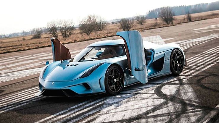 The Koenigsegg Regera produces a reported total of 1,800 Hp through a hybrid powertrain, but the power peaks of the electric motors and the internal combustion engine are spread out, or not simultaneous, leaving a maximum combined mechanical output of 1,500 Hp and 1,475 lb⋅ft of torque.