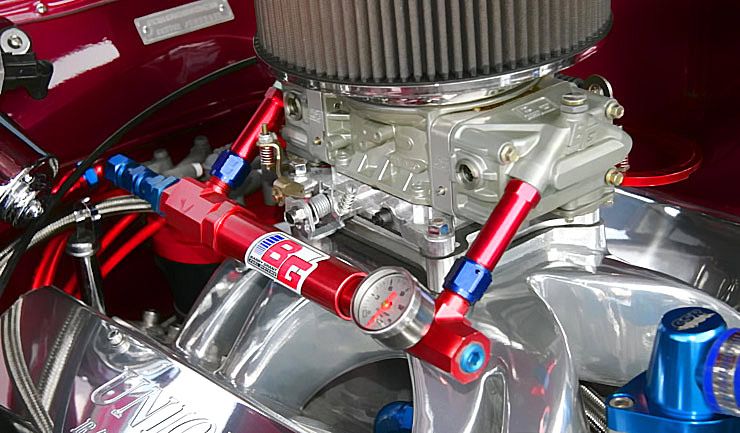 Starting from the front, when you open the bonnet of WLD77X the first thing you will notice is an ocean of chrome, stainless and billet alloy covering a very stout 330 cubic inch stroker. Luke decided to go with a 330ci because from experience they are a “happy engine” not stretched like the 355 and 383 strokers. The smaller cubed 330 has a distinctive sound and are very happy to rev all day long. Consisting of a combination of chev pistons, hemi rods, Dave Bennet Hiport alloy heads, torque power manifold and an 825 Barry Grany gold claw carby this smaller cubed 330 makes a ship load of reliable power…