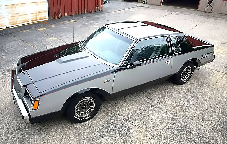 For 1986, the engine’s bottom end remained the same. But on top, a lot had been changed. From its now open intake manifold to better electronics, Buick’s continuous improvement program for the Turbo 3.8 increased its output more than 10%. It now cranked out 235 net horsepower at 4400 RPM and 330 foot pounds of torque at 2800 RPM. This year the Turbo was moved to the front of the engine and it now fed compressed air into the intake manifold through a clever little speed secret. This device cools the heated air coming out of the turbocharger to make the engine’s intake charge more dense and able to produce more horsepower. With the addition of the intercooler, this little engine that could had become the little engine that could kick your butt!It could now rip off high 13 second quarter miles at almost 100 mph in showroom stock trim! A little tweaking and the engine responded like the true race motor it was, which caused modern day muscle car enthusiasts to jump all over this car with not just wrenches but laptop computers. But just like the last days of the 60s muscle cars, the end was near for the turbo cars. However, Buick wasn’t about to let this car just disappear without doing something special. What happened next would make automotive history. What they built was the GNX with the 87 as a base line. They created a modern American classic in every way from appearance to performance. From the car’s new GNX badging to its flared fender wells and 16 by 8” BDS wheels to the classic Buick portholes, this was a collector’s car even before it was built.