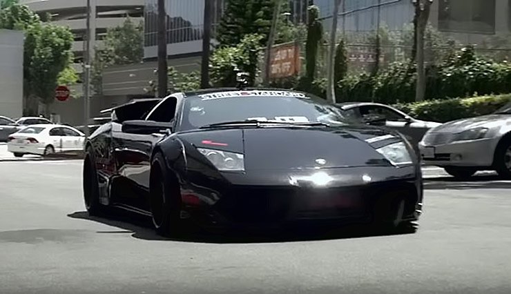 This particular Murcielago is owned by Formula Drift driver Corey Hosford and has been extensively upgraded. For starters, its 6.2-litre naturally aspirated V12 engine has been upgraded to 650 hp. Elsewhere, the car features a bespoke wide body kit from Liberty Walk, custom matte black wheels as well as a towering rear wing, new exhaust system and a bold diffuser.