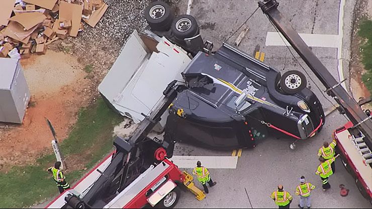 Not a good day for a semi-truck carrying candy in Locust Grove, GA. The truck gets stuck on train tracks when a train then comes along and plows right through it.