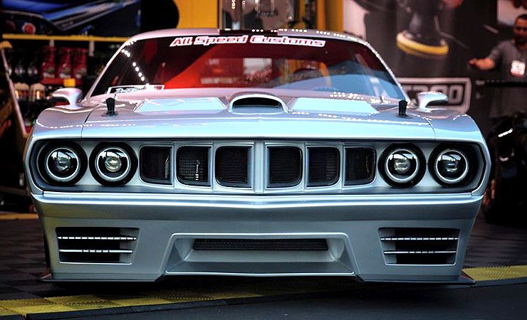 This car is the work of All Speed Customs in Muskegon, MI. They started off with a plain old 1971 Barracuda, then they went nuts.